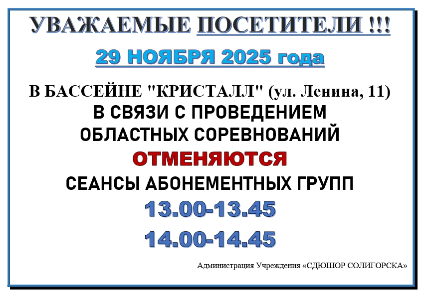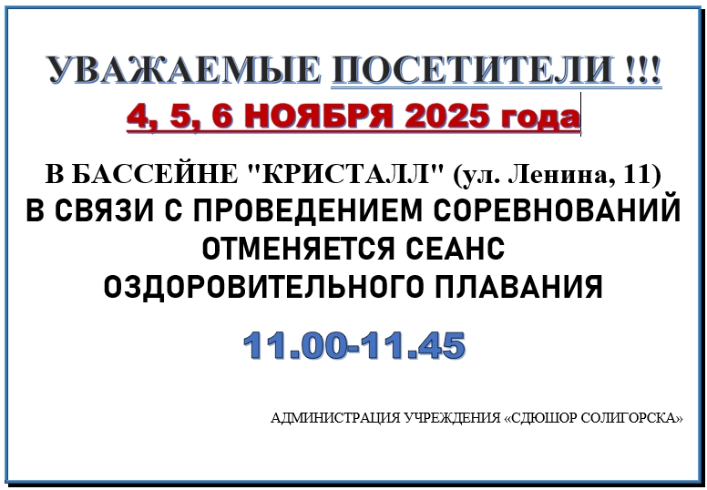 Уважаемые посетители! С 01.10.2025 по 31.05.2026 (по субботам) проводится акция "Семейное плавание".