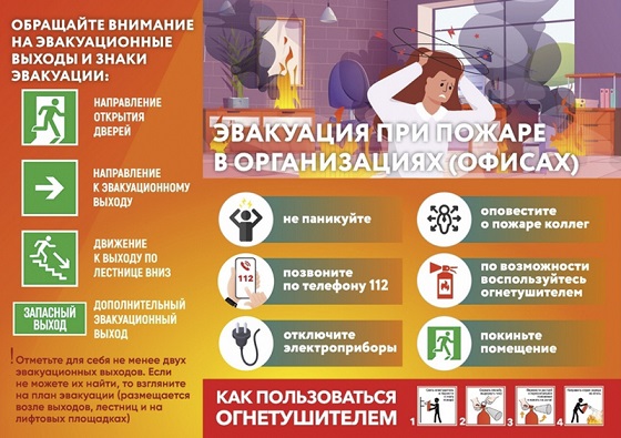 У нас в республике пожаров с трагическими последствиями не допущено, тем не менее вопрос правильной эвакуации людей из зданий при пожаре (как по месту работы, так и в общественных местах, в которых бывает каждый из нас) является актуальным.