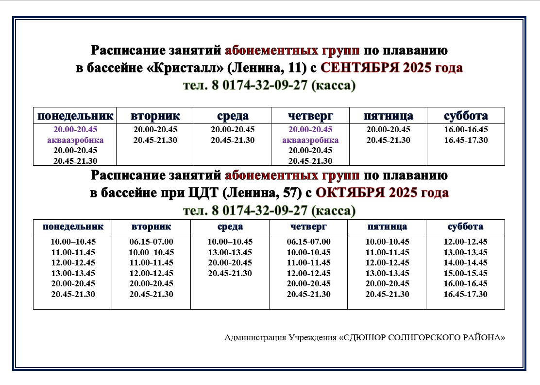 Уважаемые посетители, ждем всех на голубых дорожках бассейна! Работа бассейна при "ЦДТ" возобновит свою работу с 1 октября, об изменениях сообщим дополнительно!